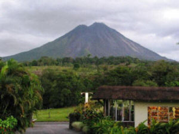 The optional Scenic Sightseeing Route to Arenal turns off the Pan-American Highway for a brief stop in the town of Grecia (Greece) to visit its unique double steeple metal church imported from Belgium in 1894 that your knowledgeable guide will tell more about.  You’ll then travel another 20 minutes to the town of Sarchi to visit its 1903 oxcart factory and many souvenir shops. (See the blue colored text section in the “Poas Volcano & Sarchi ” tour description for more details on Sarchí.)  You’ll then climb higher on a scenic drive for another ½ hour to have a delicious Costa Rican lunch at a nice restaurant with a impressive view of the Central Valley down below. After lunch we’ll continue another ½ hour through dairy and vegetable farms to the lovely town of Zarcero, with its cool mountain air, & unusual topiary gardens of juniper shrubs sculptured into wonderful enchanting figures, all in the beautiful Central Park in front of the town’s church. We'll then continue on a scenic drive for about 1.5 hrs, at first through more highland dairy and vegetable farms, then as we descend into the Northern Plains we’ll see more diverse agricultural land for beef cattle, sugar cane and other crops. By 4:00 p.m., as we get closer to the small tourism boom town of La Fortuna the imposing view of Arenal Volcano begins to dominate the landscape.
